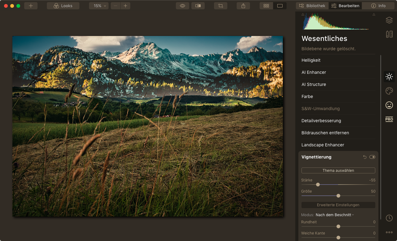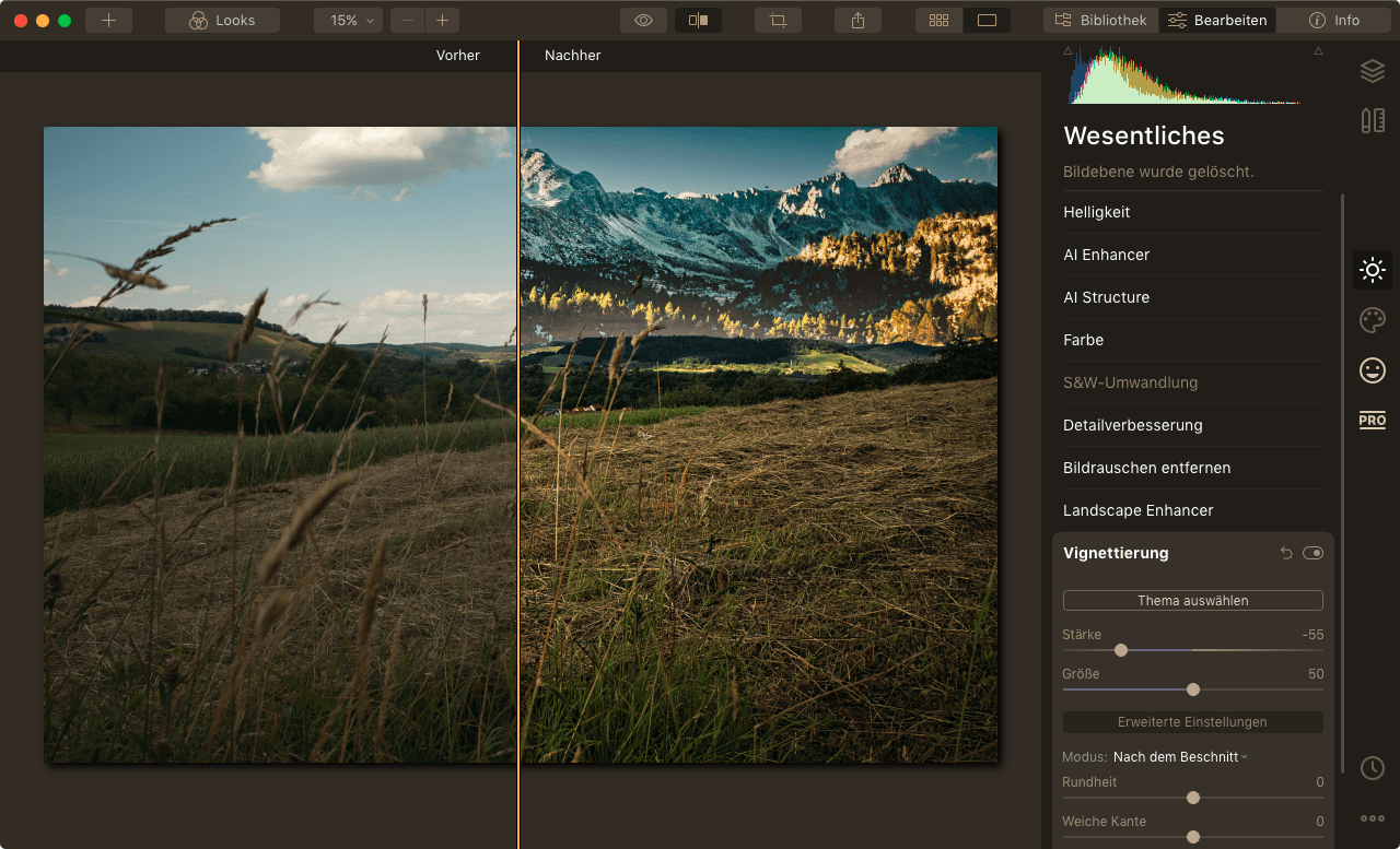 Eine Landschaftsaufnahme NACH einer Bildbearbeitung.