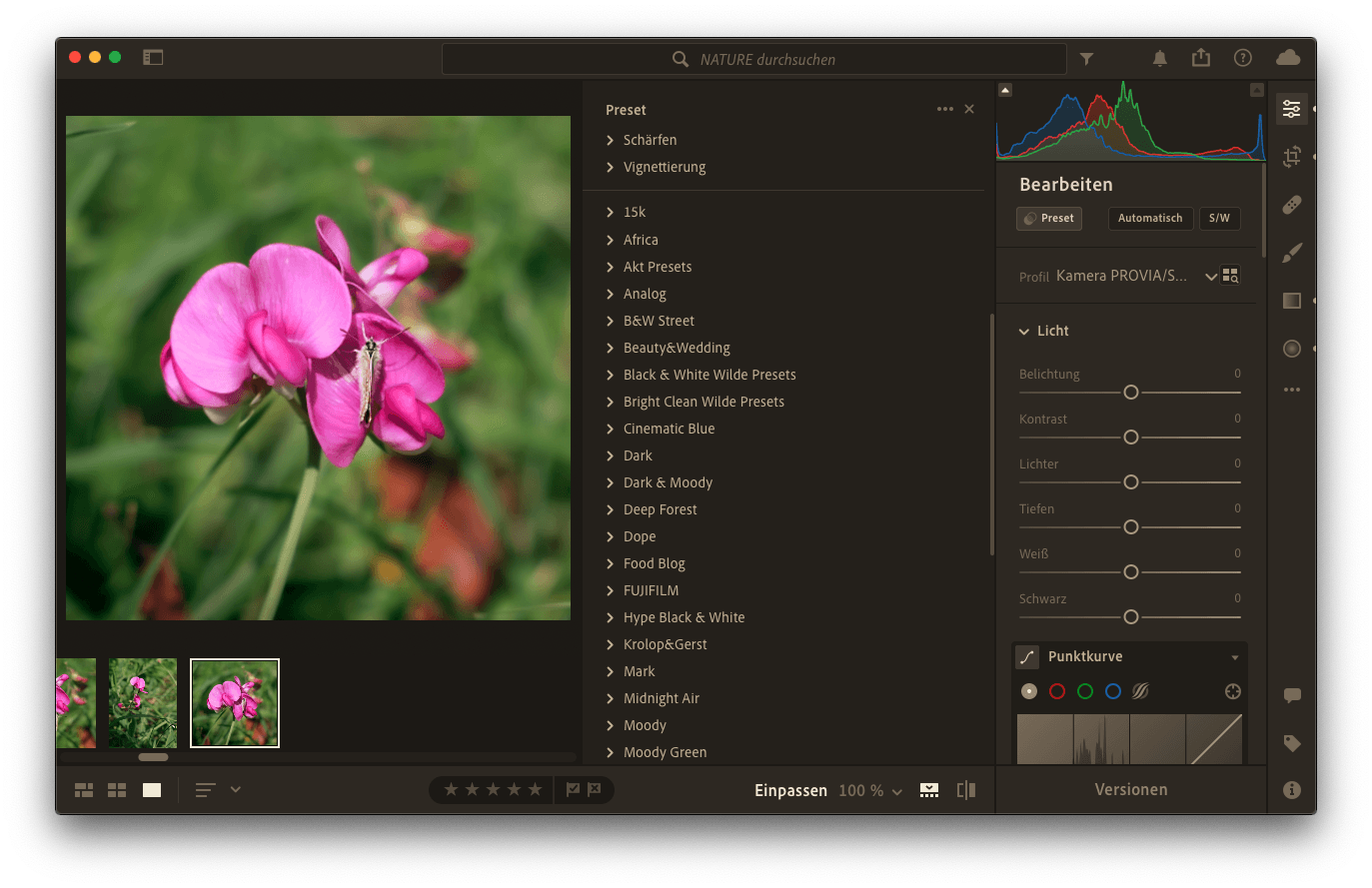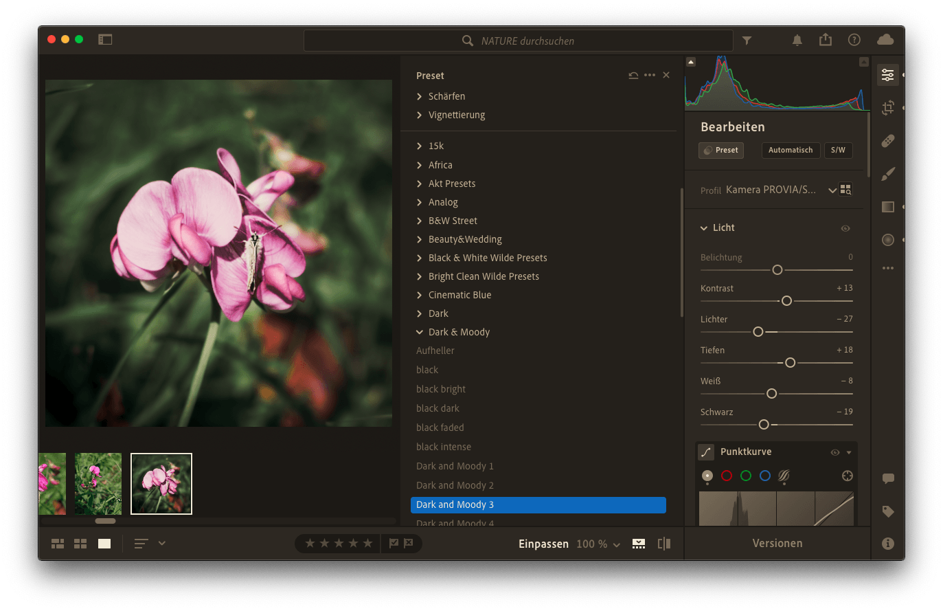 Selbstverständlich spricht nichts dagegen, breit aufgestellt zu sein. Die wenigsten Betrachter jedoch mögen Überraschungen. Wer also seine Portraits stets im Dark & Moody-Stil fotografiert bzw. entwickelt, der sollte dabei bleiben. Wenn derjenige gleichzeitig im Bereich der Landschaftsfotografie tätig ist, spricht nichts gegen die Stilrichtung "Green Light". Nur innerhalb der Stilrichtungen sollte es keine allzu großen Sprünge geben.