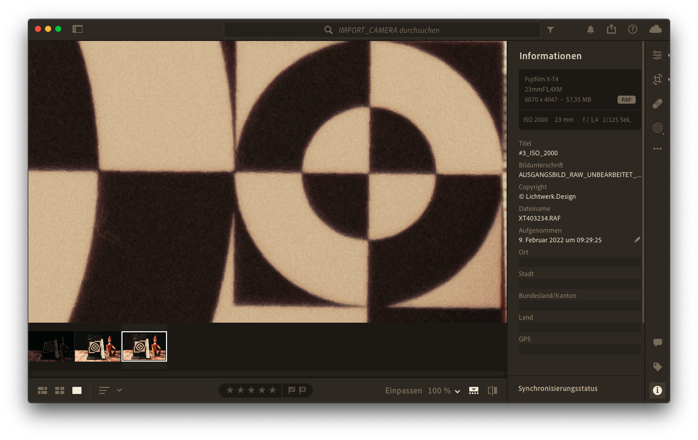 Siehst Du den Unterschied? Nein? In der "normalen" Ansicht ist kein Unterschied erkennbar. Dennoch hat das Bild 2 mit ISO 2.000 ein deutliches Rauschen. Bei normalem Betrachtungsabstand fällt das nicht auf, was übrigens dem entspricht, was ich in dem Artikel bezüglich der Angst vor hoher ISO propagiere. Die Fujifilm X-T4 verhält sich auch bei einer 2.000er ISO noch recht entspannt. Aber wechseln wir die Ansicht und gehen auf 200% (was nur Fotografen machen).