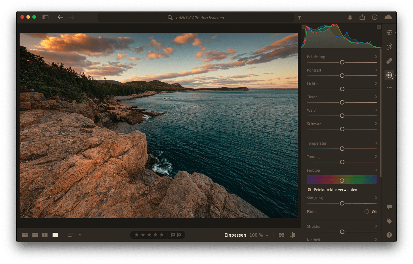 Das gleiche Bild nach der Entwicklung mit Lightroom (Desktop-Version für Mac).