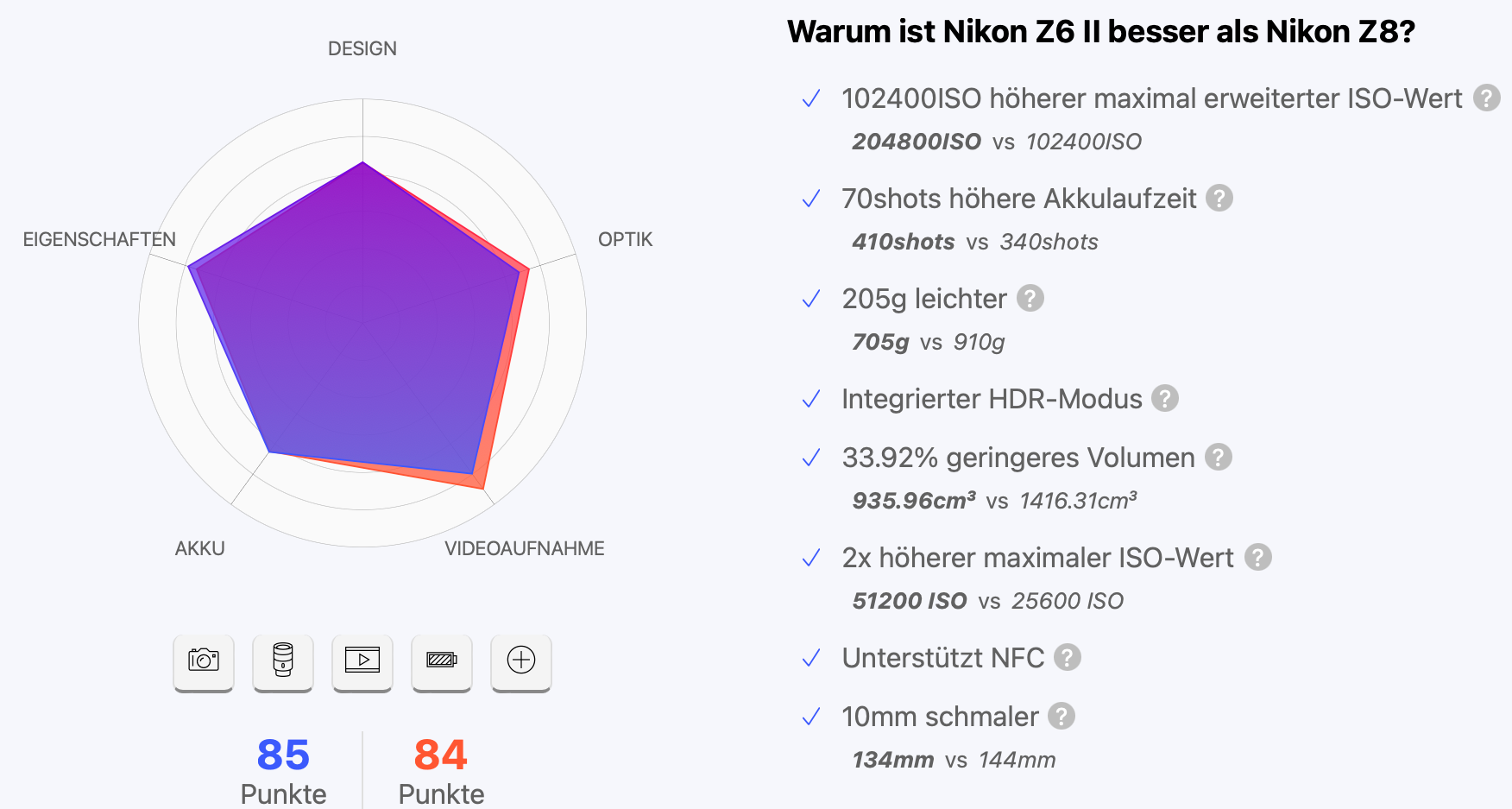 Ein weiteres Beispiel für die verirrte Politik der Hersteller ist Nikon. Die Nikon Z8 wird als „kleine“, abgespeckte Version der legendären Nikon Z9 und als Nachfolgemodell der Nikon Z6II und Z7II gepriesen. So sollte man erwarten können, dass die Z8 auch deutlich bessere Leistungen bietet.