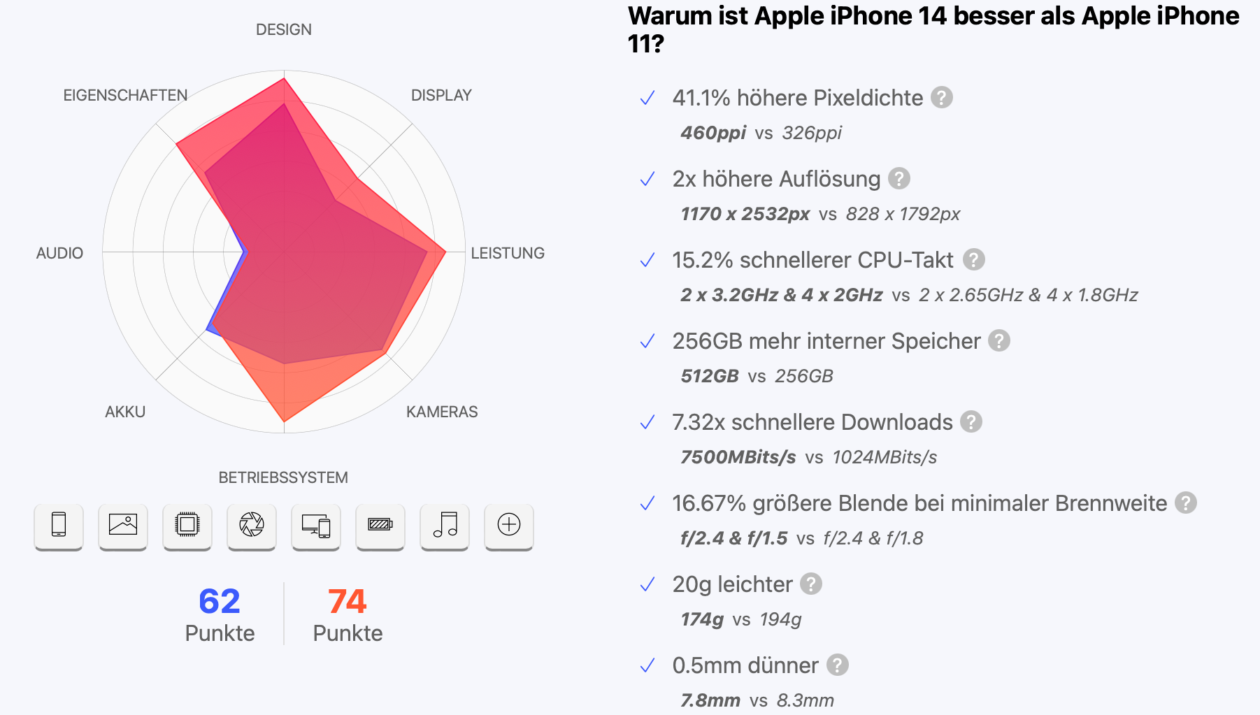Apropos Smartphone. Auch die habe ich verglichen. Nämlich ein Apple iPhone 11 (Release 2019) mit einem Apple iPhone 14 (Release 2022).