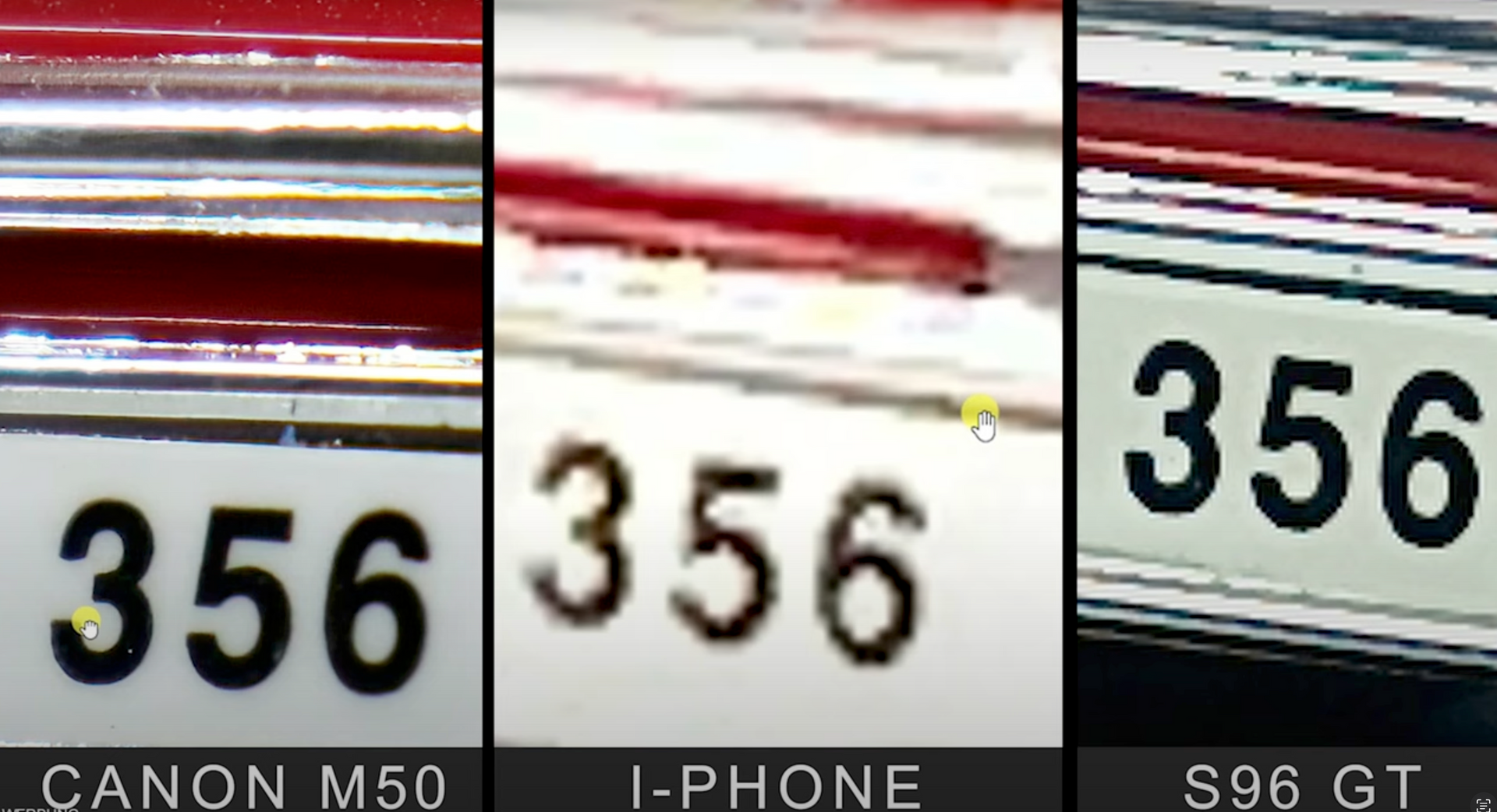Links sehen Sie das Bild mit einer Canon M50 (24 MP) aufgenommen (vergrößert auf 100%). In der Mitte mit einem iPhone der neuen Generation (Sie sehen schon deutliche Qualitätsverluste) und rechts den gleichen Ausschnitt mit einem 46 MP Handy. Trotz der vermeintlich höheren Auflösung wird die Qualität noch einmal deutlich schlechter. Sie müssen das nicht an der Marke festmachen. Die Ergebnisse sind - egal mit welchem Handy und Kamera - stets dieselben.