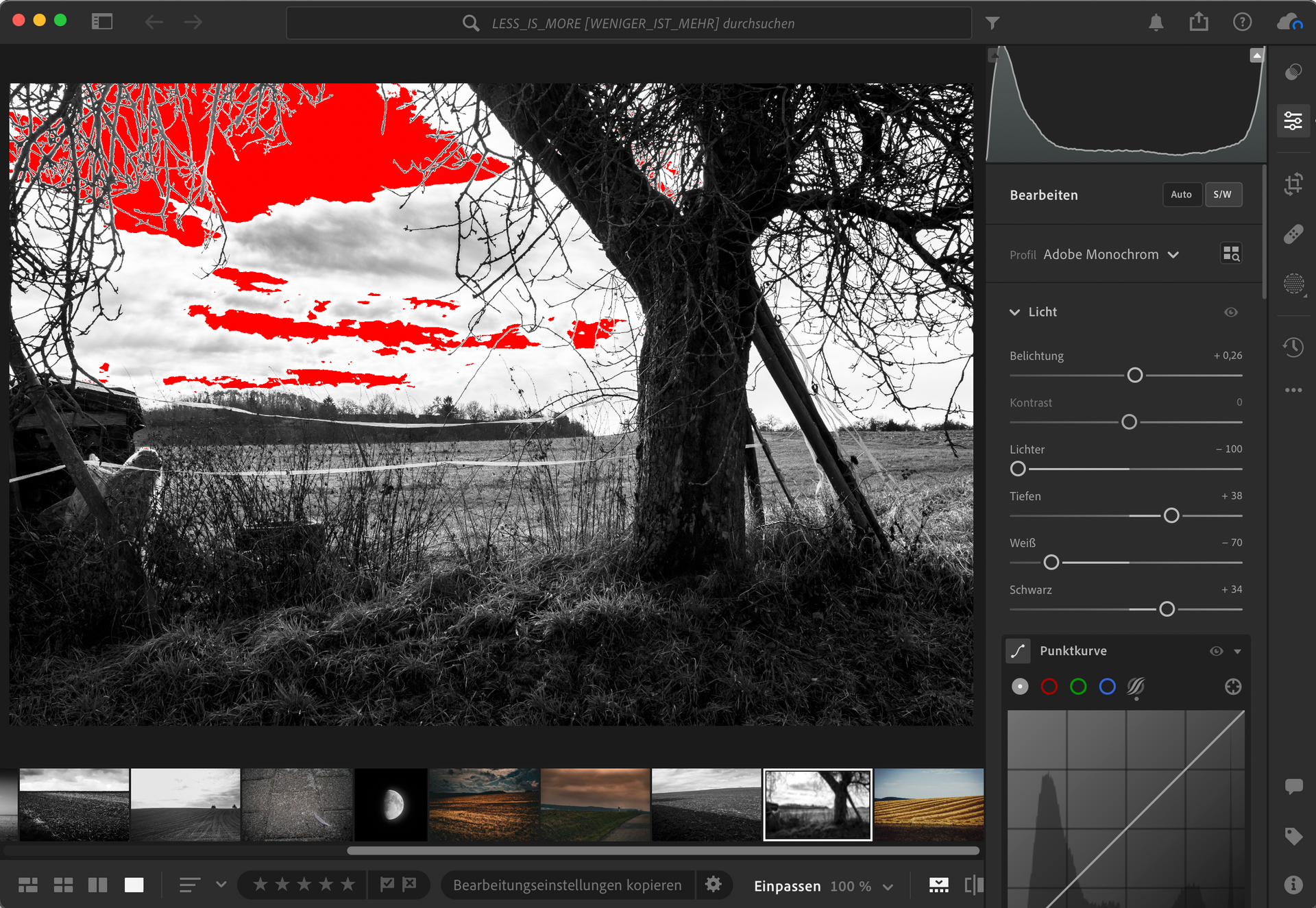 Trotz Belichtungskorrektur bleiben diese Bereiche ohne Information und der Rest des Bildes wird deutlich unterbelichtet.