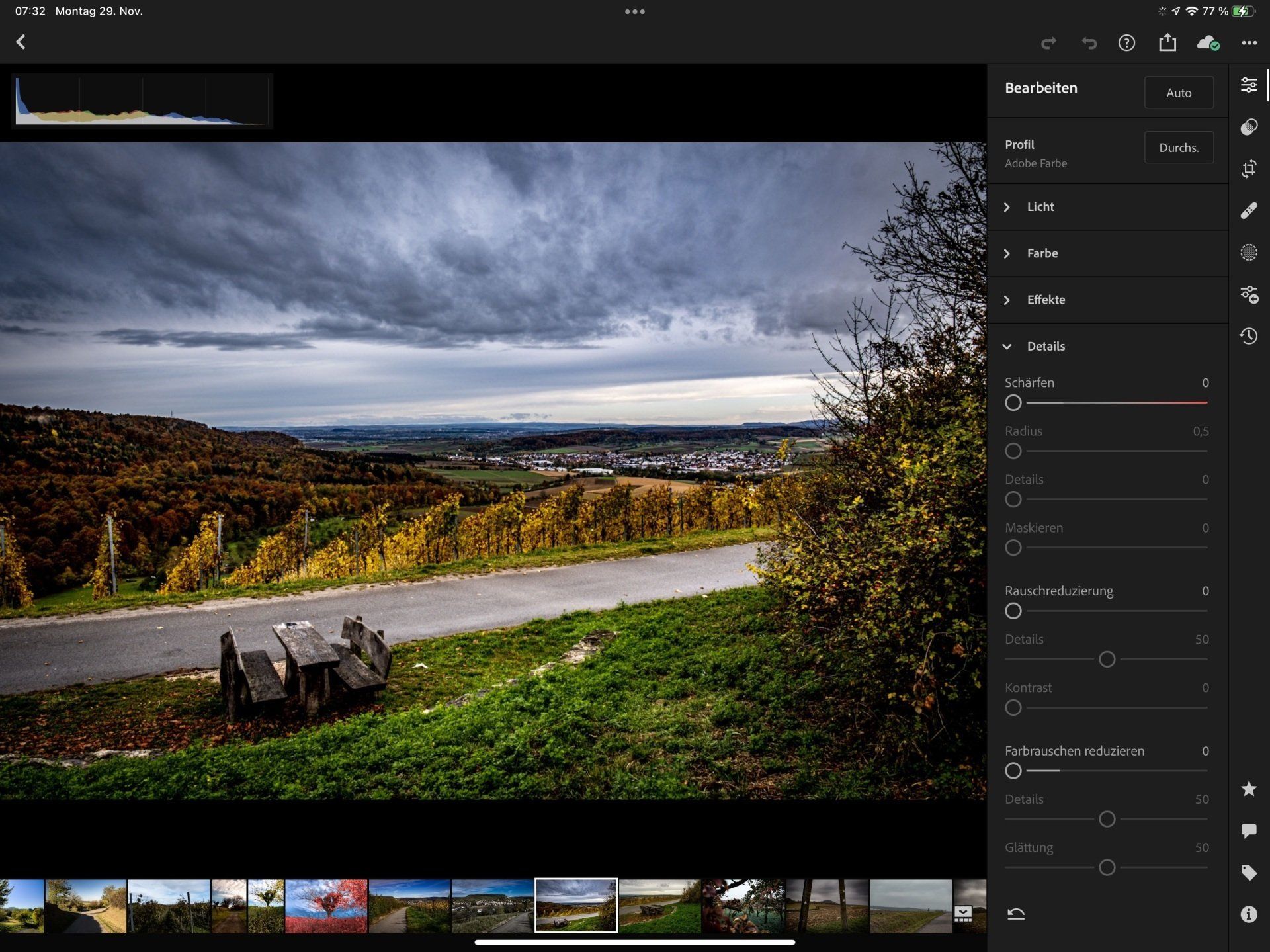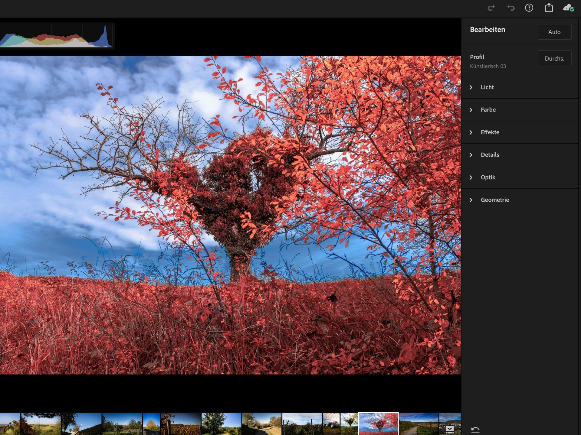 - Die Lightroom-App fotografiert im RAW-Format, synchronisiert mit meiner Mac-Version und erlaubt im iPhone nahezu alle Einstellungen, wie in der Mac-Version.